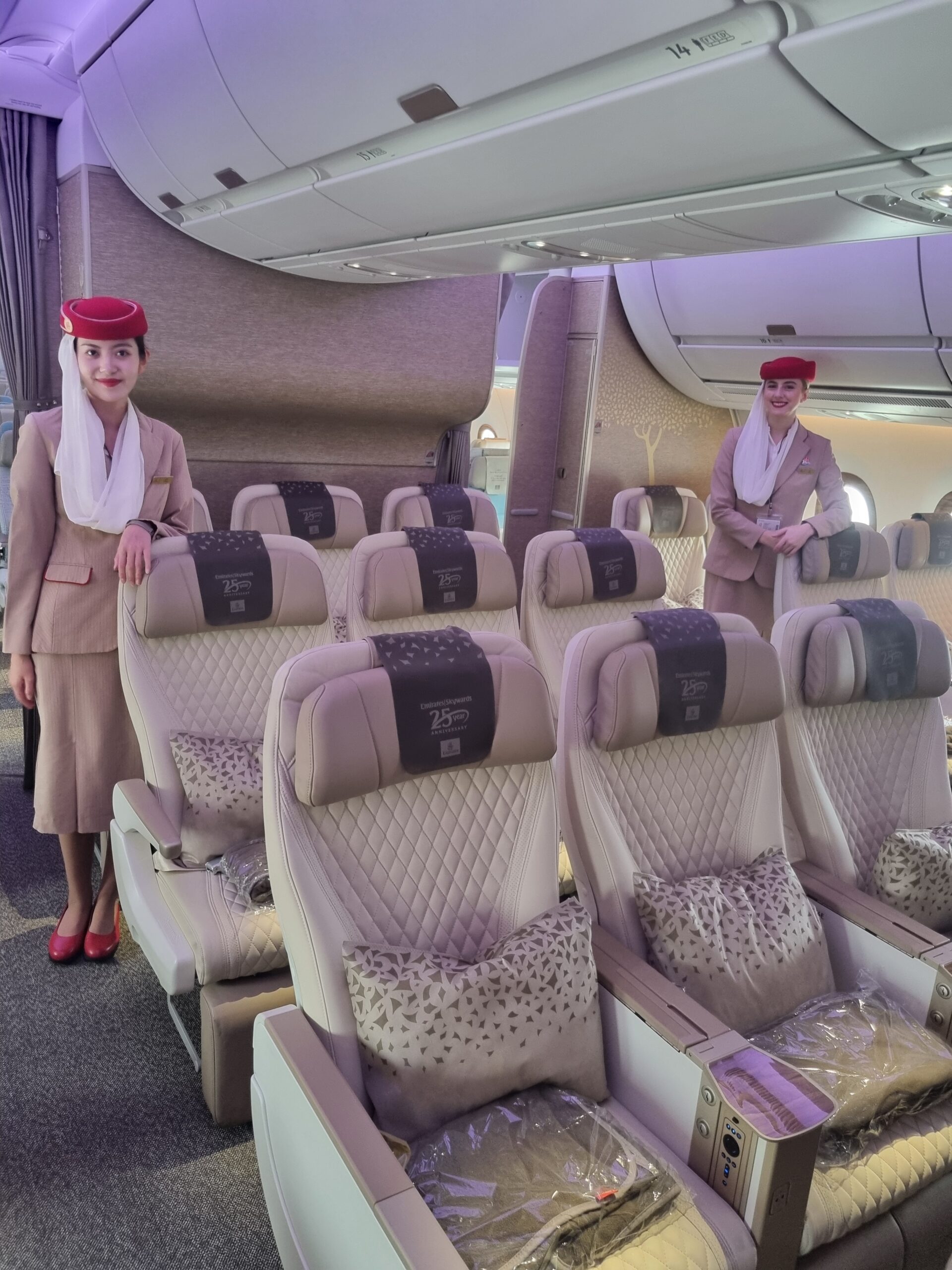 Emirates sin nye Airbus A350 byr på komfort og teknologi i toppklasse. Flyet har bedre luftkvalitet, mindre støy og raskere internett. Skjermene i alle klasser har 4K-oppløsning med mulighet for Bluetooth-tilkobling til egne hodetelefoner.